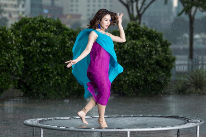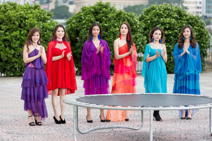 Diện những bộ trang phục màu sắc của NTK Đỗ Mạnh Cường, top 6 bước vào thử thách mang tên "Chụp hình tạo dáng tóc trên không cùng trampoline", tiêu chí để giành chiến thắng là trong 3 phút mỗi thí sinh phải thể hiện được hai nét diễn xuất thần thái khác nhau trong 1 bức ảnh dưới bàn tay nhiếp ảnh gia Chanh Nguyễn.
