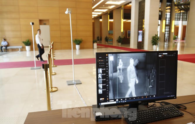 Hệ thống camera đo thân nhiệt tự động không tiếp xúc (đo từ xa với khoảng cách 2,5m - 5m) với tất cả mọi người ra vào Nhà Quốc hội.