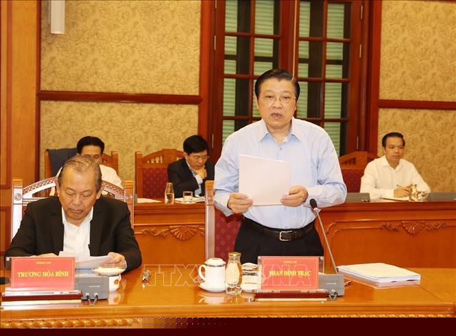 Trưởng Ban Nội chính Trung ương Phan Đình Trạc phát biểu tại cuộc họp. Ảnh: TTXVN