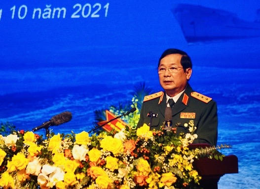 Thượng tướng Lê Huy Vịnh, Ủy viên Trung ương Đảng, Ủy viên Quân ủy Trung ương, Thứ trưởng Bộ Quốc phòng phát biểu tại lễ kỷ niệm.