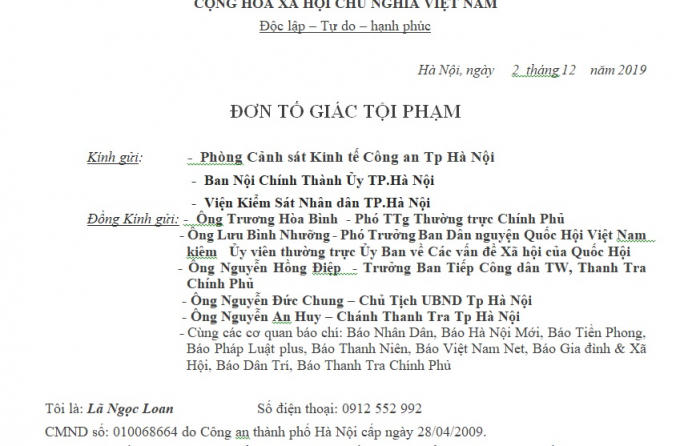 Trong đơn tố giác các hộ dân cho rằng, ông Trần Việt Trung, nguyên Phó Chủ tịch UBND Quận Đống Đa giai đoạn năm 2006 đã ký, đóng dấu Quyết định số 2363/2006/QĐ-UB ngày 26/6/2006 về việc cấp Giấy chứng nhận quyền sử dụng đất ở cho 34 hộ gia đình, cá nhân tại Phường Ô Chợ Dừa trong đó có gia đình ông Lê Hữu Tiến và bà Nguyễn Thị Nhạc tại số 27A Đê La Thành trên bỏ qua quá nhiều sai phạm rõ rệt, không thể chấp nhận như: số liệu kê khai cập kênh mâu thuẫn với hiện trạng thực tế, giấy tờ nguồn gốc đất thiếu căn cứ theo quy định,…