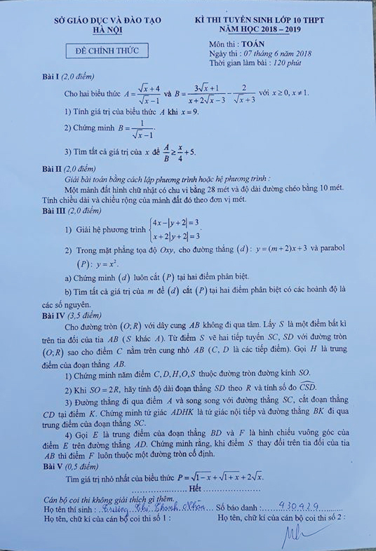 Tham khảo: Đề thi vào lớp 10 môn Toán tại Hà Nội năm 2018