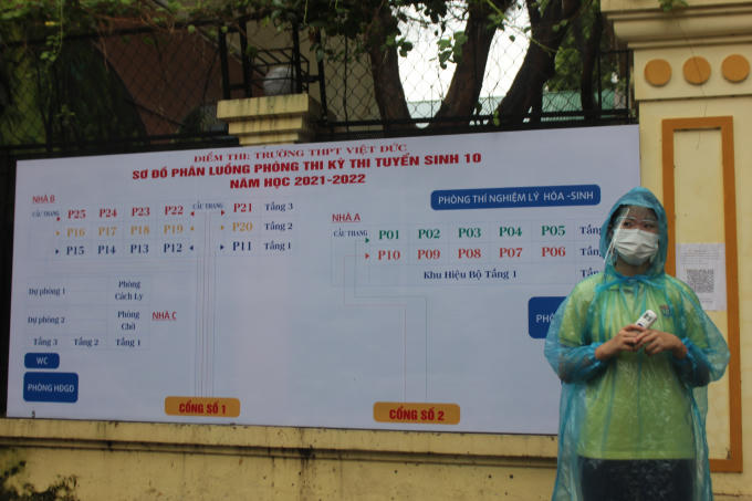 Điểm thi trường THPT Việt Đức gồm 25 phòng, được chia thành 2 cổng vào, các thí sinh từ phòng thi số 1 đến phòng 10 (thuộc nhà A) sẽ đi theo cổng số 2, còn các thí sinh từ phòng thi số 11 đến 25 sẽ đi theo cổng số 1.