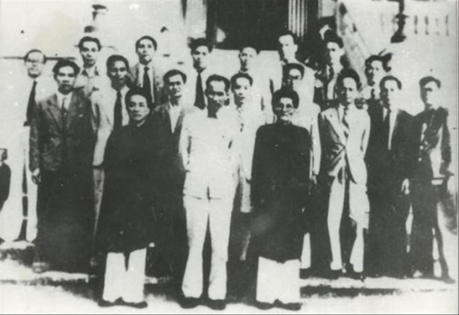 Chủ tịch Hồ Chí Minh và các thành viên Chính phủ lâm thời sau phiên họp chính phủ đầu tiên ngày 3/9 - Ảnh tư liệu