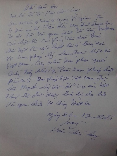 Bức thư tay ông Hàn Đức Long viết cảm ơn các luật sư, nhà báo sau ngày được minh oan.