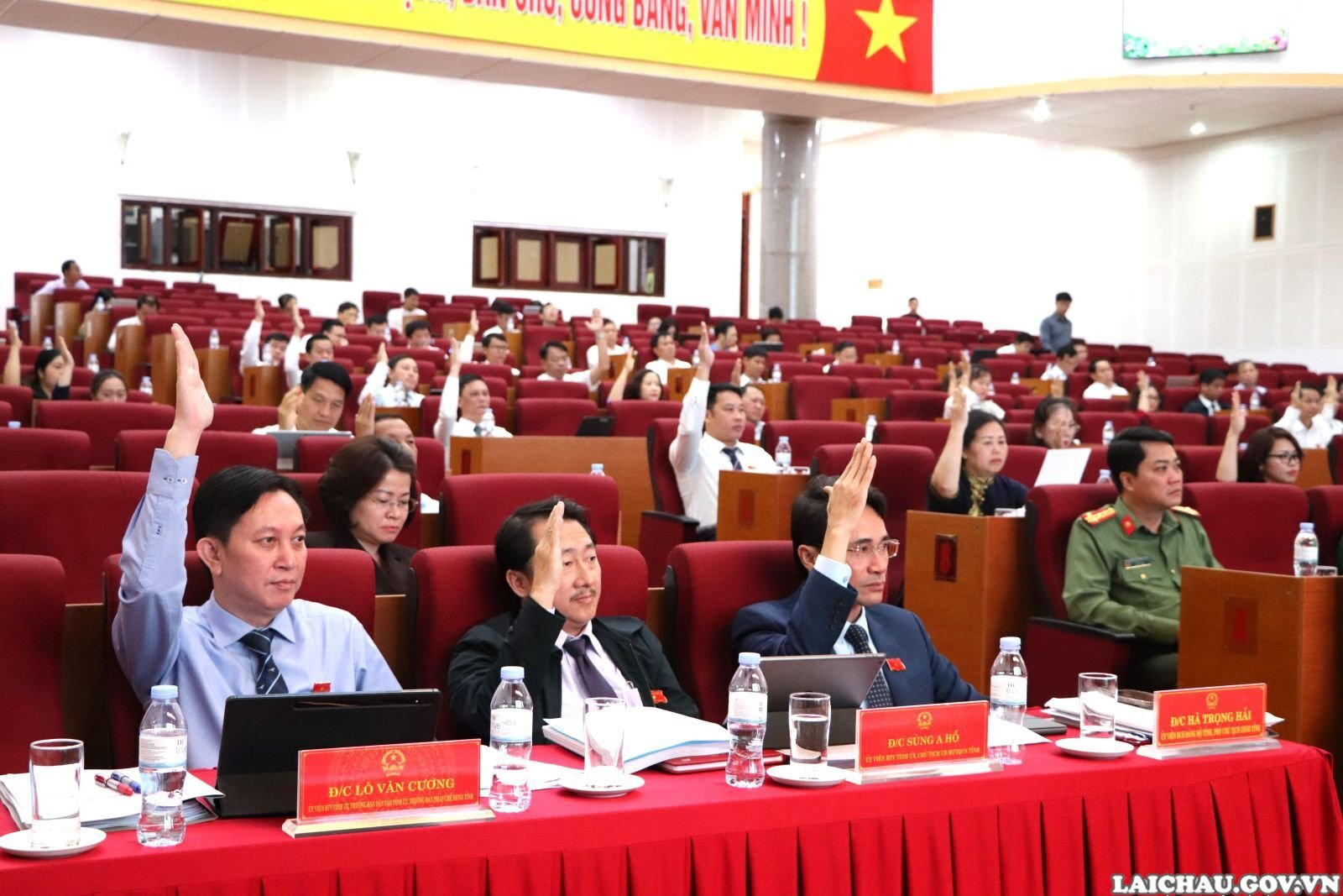Các đại biểu biểu quyết.(Ảnh: laichau.gov.vn).