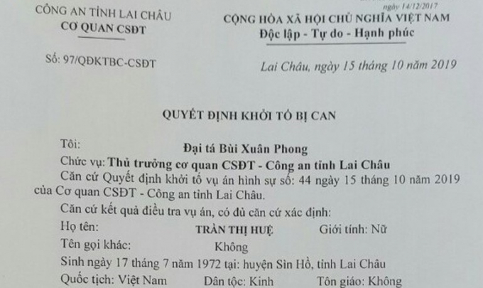 Sau thời gian điều tra, xác minh, thu thập chứng cứ, ngày 15/10/2019, Cơ quan Cảnh sát điều tra Công an tỉnh Lai Châu đã ký các quyết định khởi tố vụ án hình sự, khởi tố và bắt tạm giam các bị can về tội tham ô tài sản, quy định tại Điều 353, Bộ Luật hình sự.