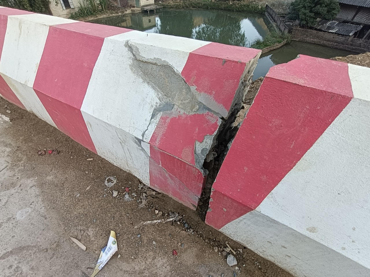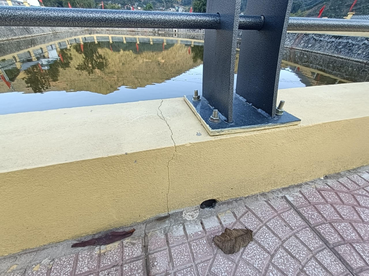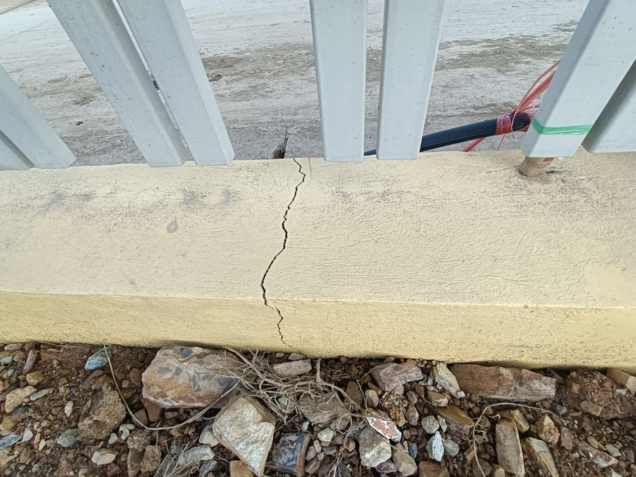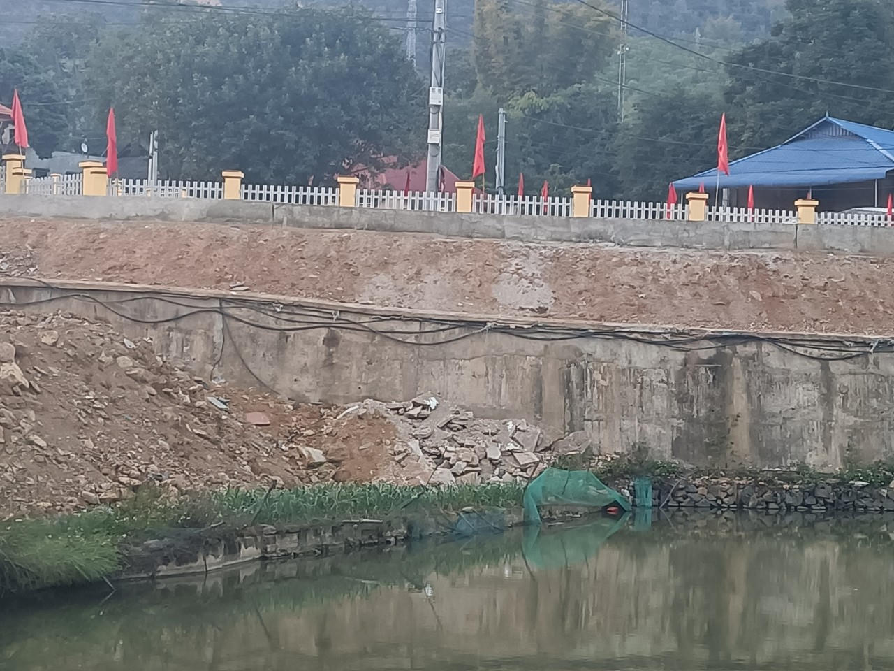 Không chỉ đường bê thông bị xuống cấp mà hạng mục tường bao quanh khuôn viên và kè xây bao quanh áo cá cũng xuất hiện khá nhiều vết rạn nứt, dấu hiệu thi công kém chất lượng.