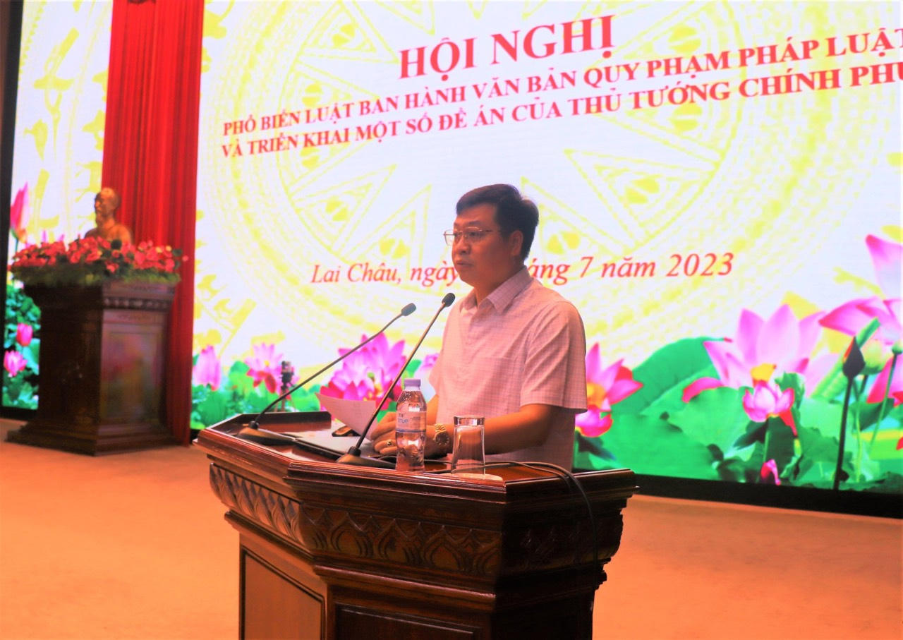 Ngày 26/7/2023, UBND tỉnh Lai Châu tổ chức Hội nghị Phổ biến Luật ban hành văn bản quy phạm pháp luật và triển khai một số Đề án quan trọng của Thủ tướng Chính phủ bằng hình thức trực tuyến tại điểm cầu tỉnh tới các huyện, thành phố; các xã, phường, thị trấn trên địa bàn tỉnh.