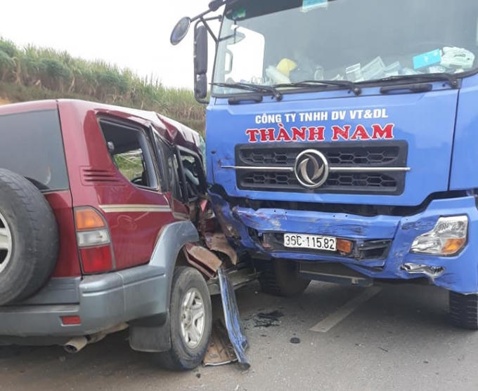 Tại hiện trường, cú va chạm đã khiến một bên của xe Toyota biến dạng, bánh xe bị văng ra, còn chiếc xe tải bị hư hại nhẹ ở phần đầu xe. Có thể dễ dàng quan sát thấy chiếc xe tải đã phanh và để lại vết phanh trên đường dài khoảng 5 – 7m khi xảy ra va chạm. Hiện chưa rõ thiệt hại của vụ tai nạn.