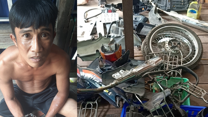 Tiến hành kiểm tra, lực lượng Công an thu giữ 01 bọc ma túy tổng hợp dạng đá có khối lượng trên 11gam, nhiều xe máy các loại, phụ tùng và giấy chứng nhận đăng ký xe máy có liên liên quan đến các vụ trộm trên địa bàn huyện Châu Thành.