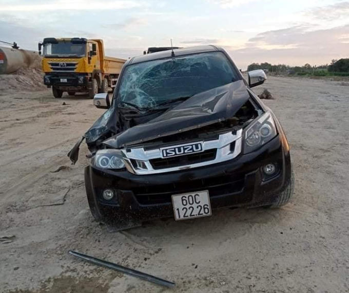 Khoảng 10 phút sau, chiếc máy xúc tiếp tục tiến lại gần chiếc xe ô tô bán tải màu đen mang BKS: 60C-122.26. Lúc này tài xế xe bán tải đã cố gắng di chuyển ra nơi khác nhưng vẫn bị người lái máy xúc điều khiển gàu, chọc 2 phát thẳng vào đầu xe. Tài xế xe bán tải may mắn thoát nạn, tung cửa bỏ chạy ngay sau đó.