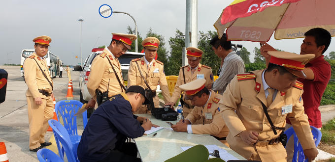 Sáng 20/2, trên tuyến cao tốc Hà Nội- Hải Phòng (đoạn Km 10+600 hướng Hà Nội- Hải Phòng, thuộc địa phận huyện Văn Giang, tỉnh Hưng Yên), Tổ công tác của Cục CSGT (Bộ Công an) lập chốt tổng kiểm tra giấy tờ đối với toàn bộ tài xế xe tải, xe kinh doanh vận tải khách từ 8 chỗ trở lên, nhằm kịp thời phát hiện tài xế vi phạm nồng độ cồn, sử dụng ma tuý cũng như các vi phạm pháp luật khác.