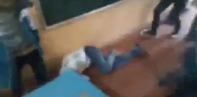 Bất chấp sự ngăn cản của nhiều nữ sinh khác có mặt trong lớp, nam sinh vẫn phải đứng chịu trận từ nhóm nam sinh trên cho tới khi phải ngã gục trên bục giảng nhóm nam sinh trên mới chịu dừng lại.