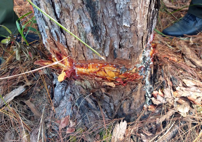 "Lóc thịt" cây thông tại vị trí gần sát gốc.