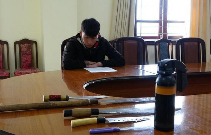 Khám xét nơi ở của các đối tượng, lực lượng chức năng thu được 5 dao lê, mã tấu, bình xịt hơi cay.