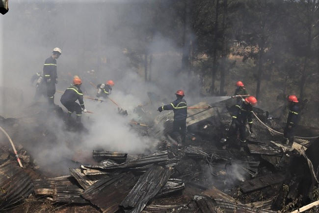Nhận tin báo, Phòng Cảnh sát PCCC-CNCH Công an tỉnh Lâm Đồng đã điều 4 xe chữa cháy đến hiện trường để dập lửa.