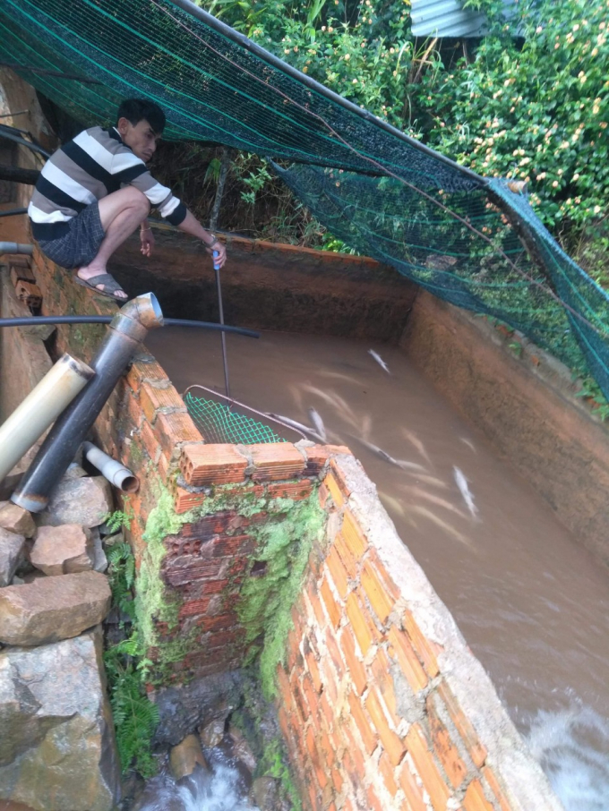 Đến tháng 12/2019, ông Sơn lại tiếp tục mua 2.000 con cá tầm giống nuôi lại đến cuối tháng 4, ông Sang cho thuốc trừ sâu ra dòng suối khiến dòng nước ô nhiễm làm cá tầm trong hồ chết sạch.