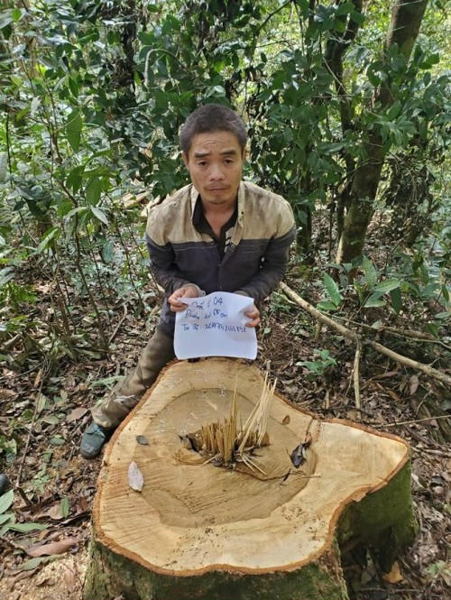 Đối tượng Quách Văn Tài tại hiện trường vụ phá rừng.