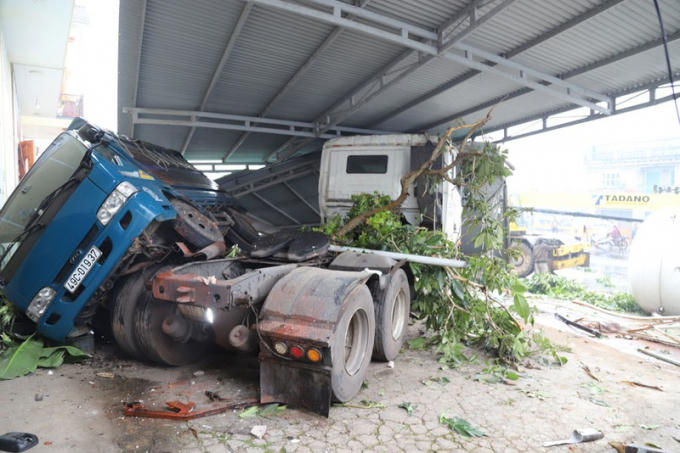 Khi đến địa điểm trên, xe bồn tông vào 3 nhà dân ven đường. Sau cú tông kinh hoàng, chiếc xe bồn bị gãy đôi.