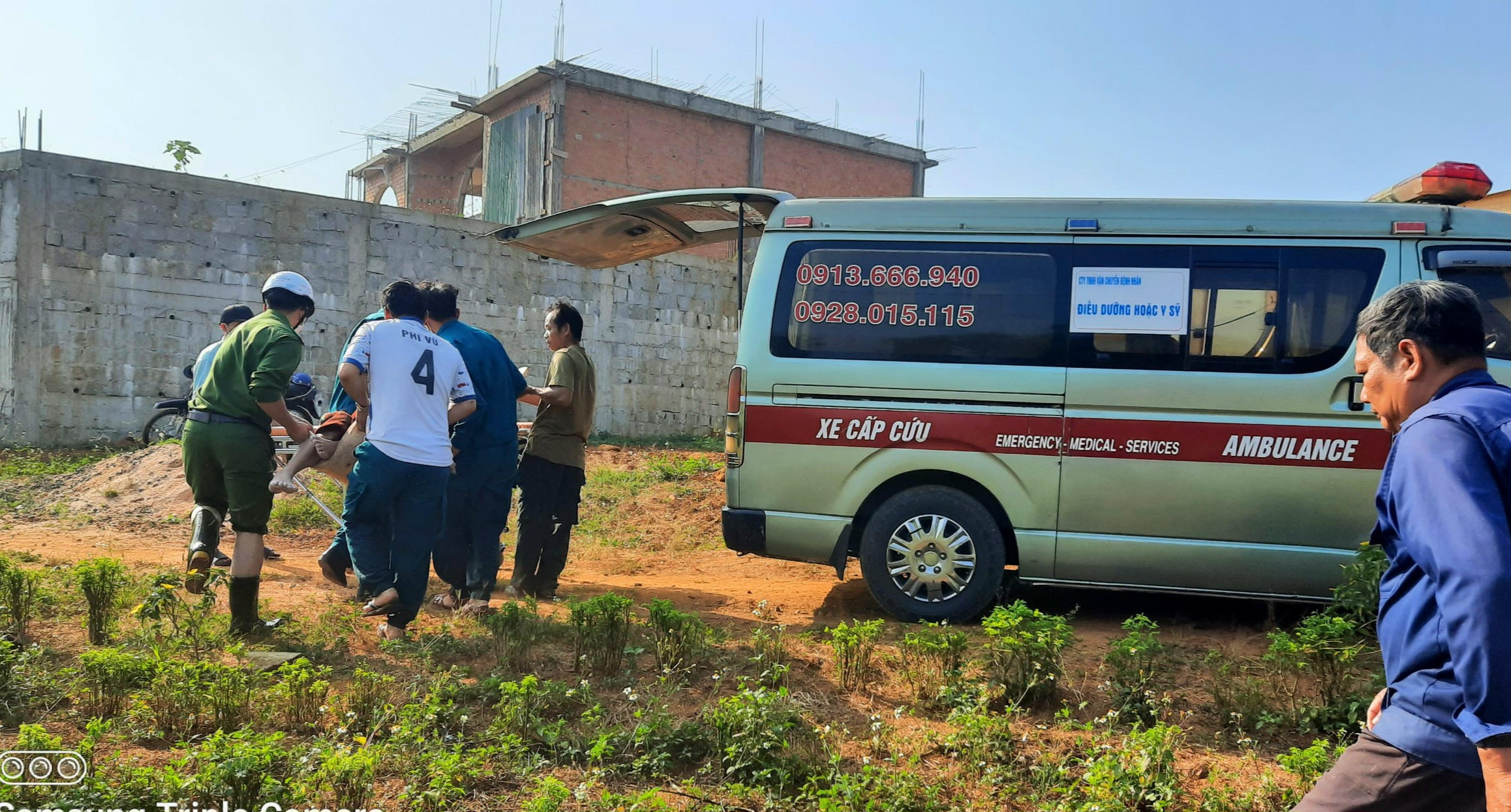 Người thân và cơ quan chức năng đưa ông K. đi cấp cứu. Ảnh: K.P