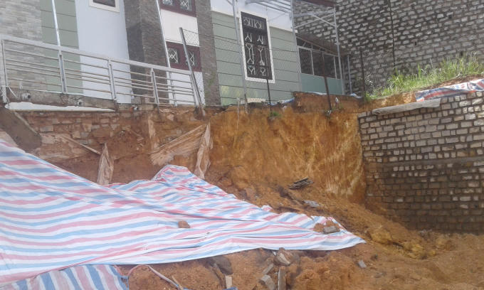 Có mặt tại hiện trường, theo ghi nhận cho thấy bờ taluy bị sụp dạng hàm ếch có chiều dài khoảng 15m, ăn sâu vào móng của căn nhà số 20 gần 2m.