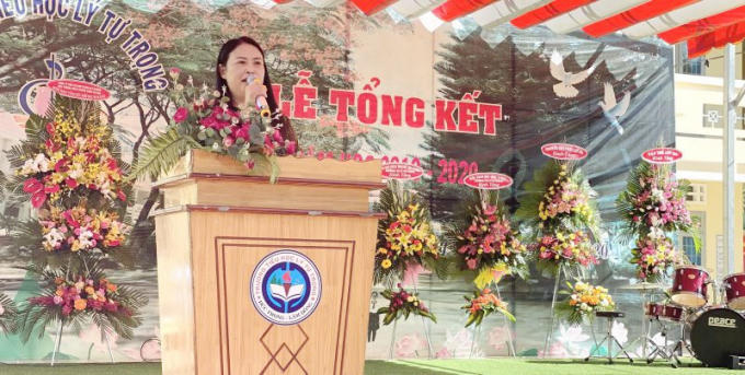 Cô Hồ Thị Công – Bí thư Chi bộ, Hiệu trưởng trường phát biểu tổng kết năm học 2019 – 2020.