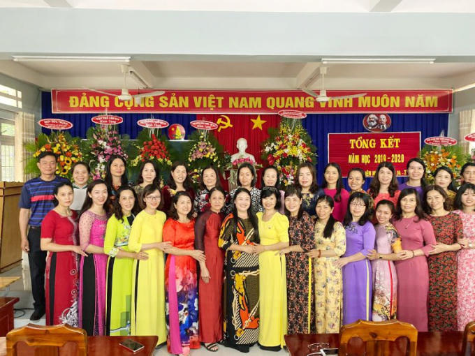 Tập thể giáo viên trường Tiểu học Lý Tự Trọng trong lễ khai mạc buổi tổng kết năm học 2019 – 2020.