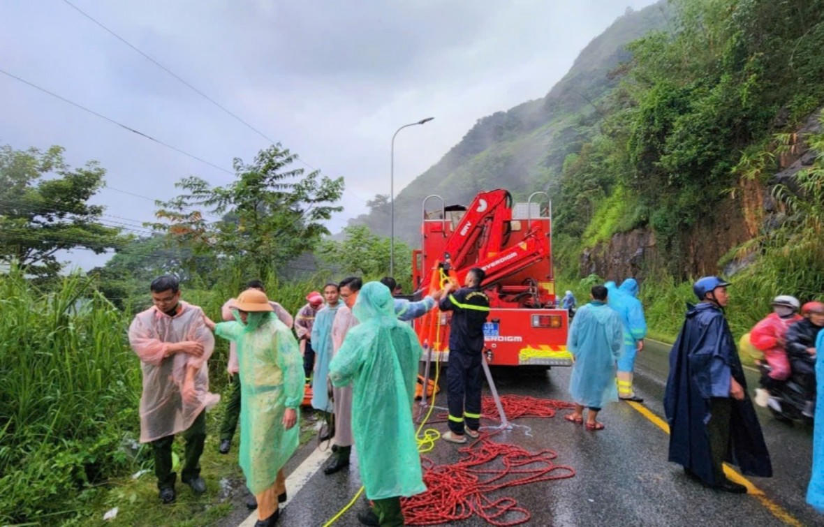 Đến khoảng 17 giờ 15 phút cùng ngày, các lực lượng cứu hộ đã đưa được 2 nạn nhân lên khỏi vực sâu.