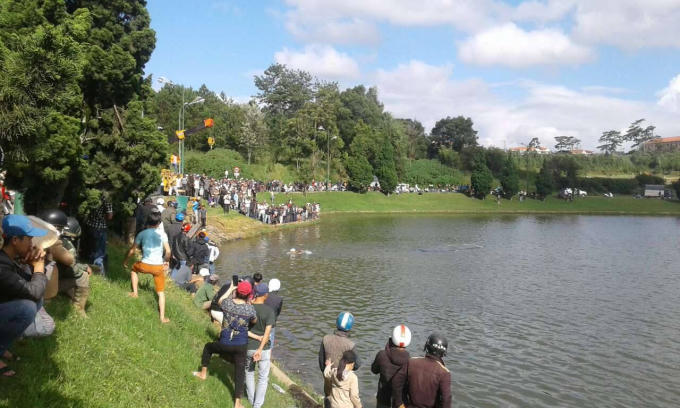 Ngay khi xảy ra tai nạn, lực lượng chức năng TP Đà Lạt, tỉnh Lâm Đồng đã có mặt tại hiện trường để phân luồng, điều tiết giao thông, triển khai công tác cứu hộ để đưa chiếc xe gặp nạn lên bờ.