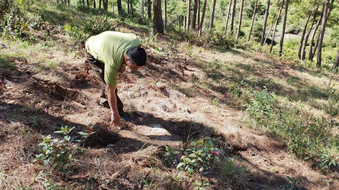 Với thủ đoạn tinh vi là cưa hạ cây thông sát đất, sau đó lấp đất lại, phủ lên lớp cỏ và lá thông khô để xóa dấu vết của vụ phá rừng.