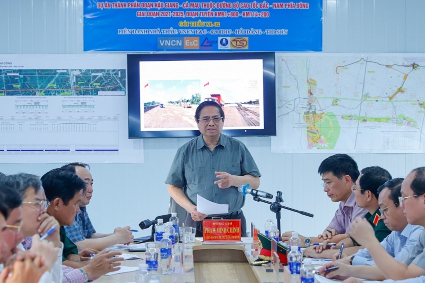 Chiều 20/4, tại tỉnh Cà Mau, Thủ tướng Phạm Minh Chính đã đi kiểm tra, động viên các lực lượng thi công dự án cao tốc Cần Thơ – Cà Mau, làm việc với các bộ, ngành, cơ quan liên quan thúc đẩy tiến độ dự án này và khẩn trương triển khai dự án cao tốc từ Cà Mau tới Đất Mũi và nối tới cảng Hòn Khoai.