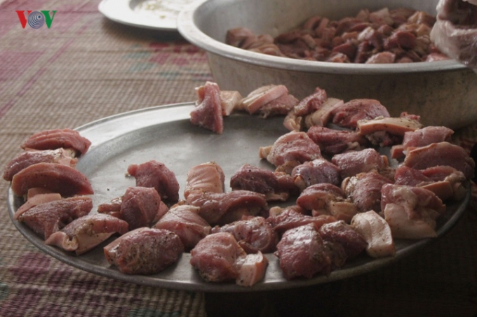 Thịt phải là loại thịt ba chỉ hoặc thịt vai. Trước khi gói bánh, thịt được ướp với các gia vị như nước mắm ngon, hạt tiêu sọ...