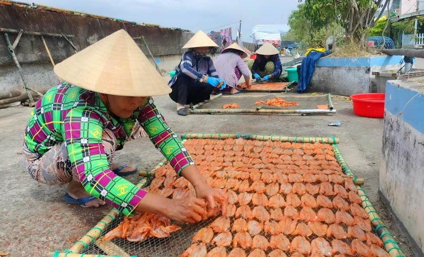 Làng nghề cá khô ở vùng biển Gành Hào, huyện Đông Hải (tỉnh Bạc Liêu) đang tăng tốc sản xuất phục vụ thị trường Tết Nguyên đán Giáp Thìn năm 2024.