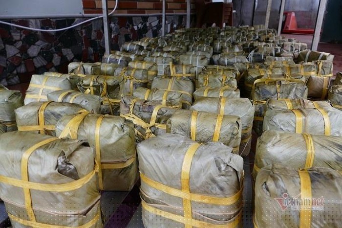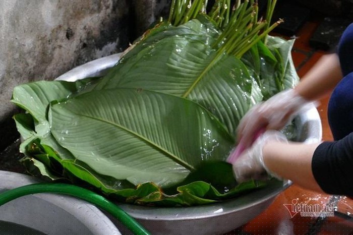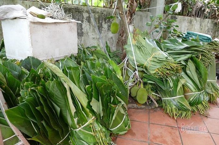 Lá dong dùng để gói bánh được thu mua từ các tỉnh miền núi.