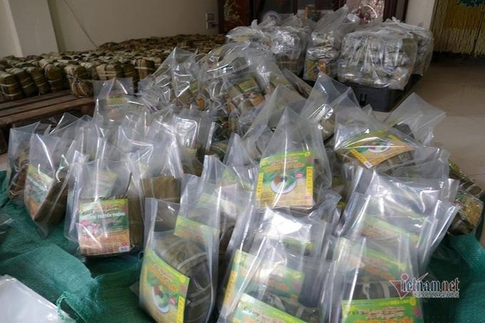 Sau khi luộc chín, ép nước, bánh làng Tranh Khúc được cho vào túi nilon, ép chân không.