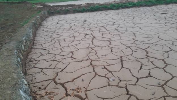 | Nhiều khu ruộng bị nước thải tràn vào. |
