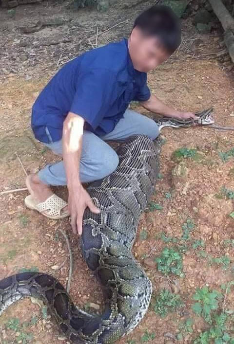 Lạng Sơn: Người dân bắt sống trăn khổng lồ nuốt dê trên núi