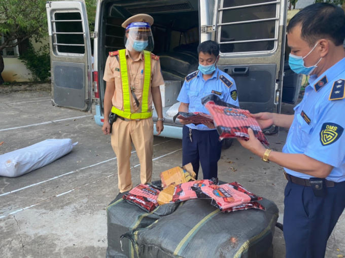 Tại thời điểm kiểm tra, Đoàn công tác phát hiện trên xe đang vận chuyển 12 bao tải dứa màu đen bên trong chứa thực phẩm đóng gói sẵn nhập lậu (có nhãn mác chữ nước ngoài). Tổng số hàng hóa trên gồm 430 gói Xúc xích loại 2kg/gói, với tổng trọng lượng 860 kg. Trị giá lô hàng theo giá thị trường ước tính, gần 70 triệu đồng.