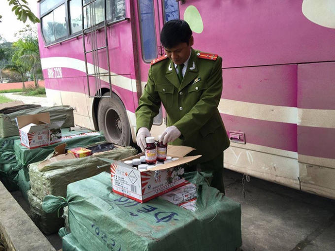 Công an tỉnh Lạng Sơn phát hiện bắt giữ 300 lít thuốc bảo vệ thực vật, 1.440 quả pháo điện do Trung Quốc sản xuất.