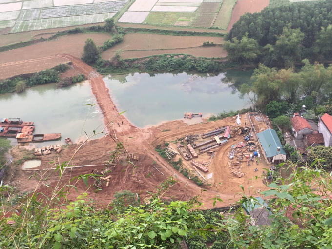 Ngang nhiên xây dựng đường đi cắt ngang dòng sông Trung.