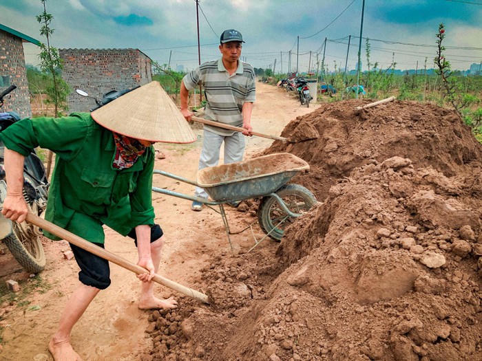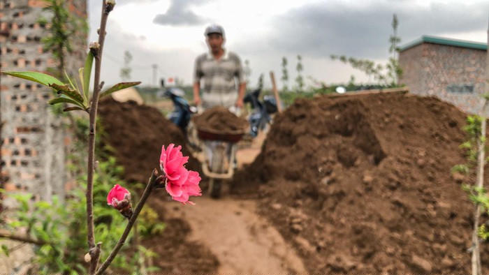 Chở đất phù sa mới về trồng đào.