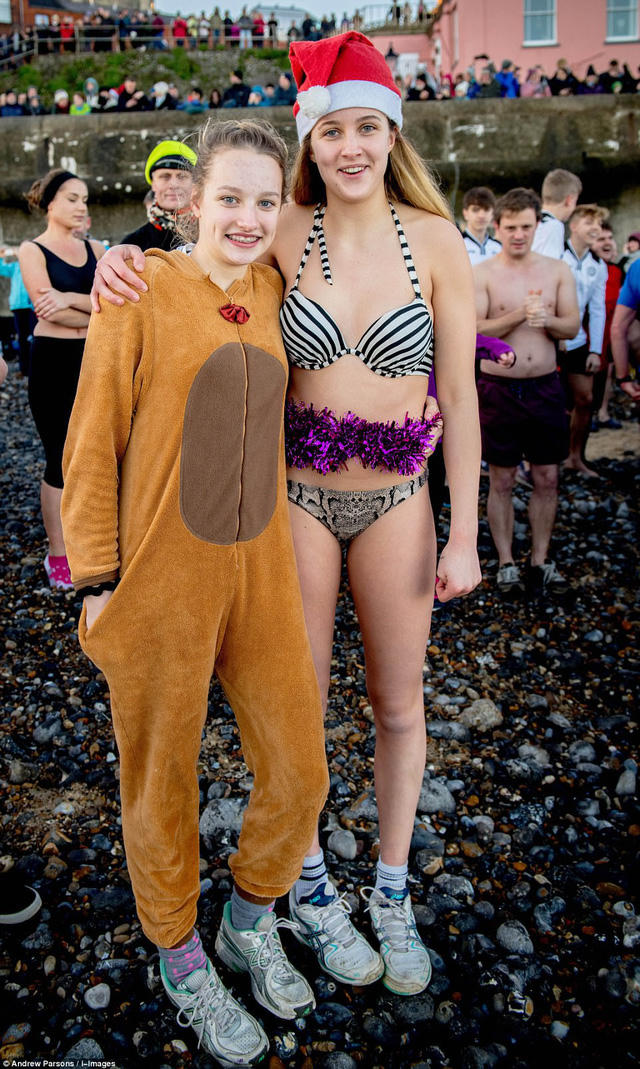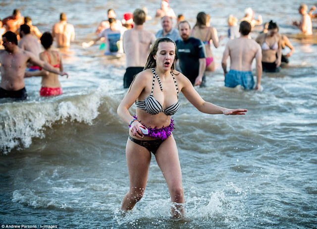 Bất chấp nhiệt độ hạ sâu xuống -8 độ C, hàng nghìn người vẫn mặc trang phục đồ tắm, lao người xuống biển tắm nước lạnh.