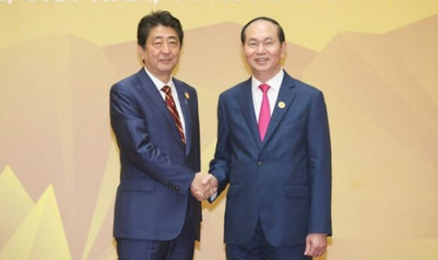 | Chủ tịch nước Trần Đại Quang, phải, tiếp Thủ tướng Nhật Bản Abe đến dự APEC 2017 tại Đà Nẵng. Ảnh: TTXVN. |