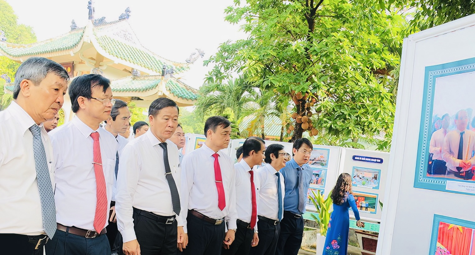 Các đại biểu thăm quan các hình ảnh, tư liệu về Chủ tịch Hồ Chí Minh và hình ảnh về học tập đạo đức, phong cách của Người. (Nguồn: Báo Đồng Nai)
