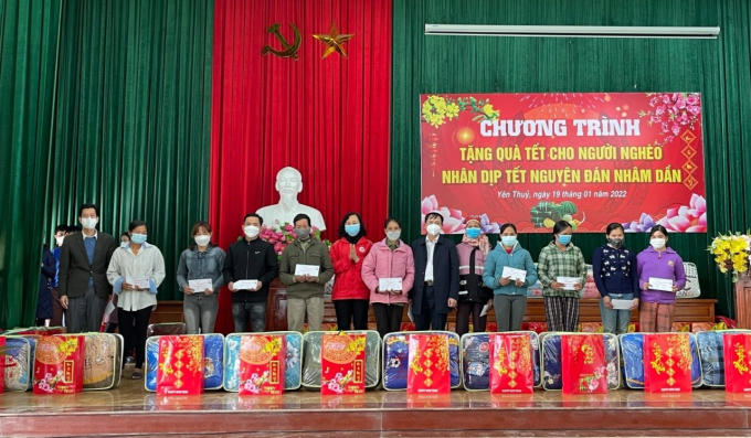 Chủ tịch UBND tỉnh Hòa Bình và đoàn công tác đã trao tặng 300 suất quà Tết của Tỉnh ủy, HĐND, UBND, Ủy ban MTTQ tỉnh cho các hộ nghèo, hộ cận nghèo, hộ gia đình chính sách, hộ có hoàn cảnh khó khăn đột xuất trên địa bàn, mỗi suất quà trị giá 700 nghìn đồng.