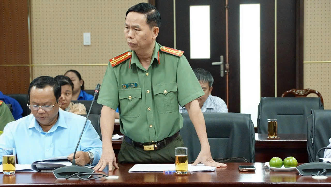 Phó Giám đốc Công an tỉnh Đồng Nai Đại tá Trần Tiến Đạt trao đổi với thanh niên tại đối thoại.