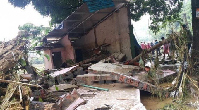| Gần 1000 ngôi nhà bị tốc mái, đổ sập do mưa lũ. |