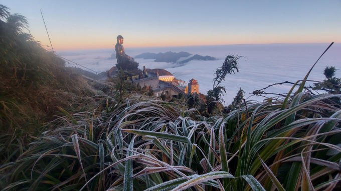 Tính từ đầu năm, đây là lần thứ 3 trong mùa đông năm 2020 sương muối xuất hiện tại khu vực đỉnh Fan-si-pan.