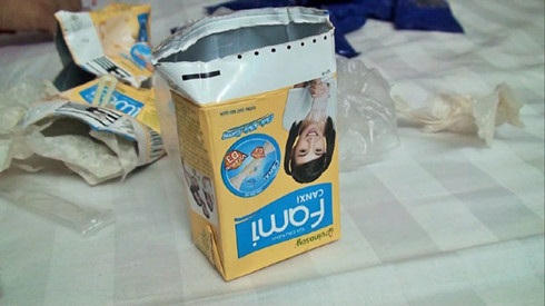 Tang vật thu giữ gồm 6.000 viên ma túy tổng hợp, màu hồng đựng trong 30 túi nilon màu xanh, được ngụy trang trong vỏ 4 hộp sữa hiệu Fami.